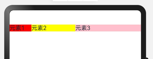 | Row() { Text("元素1") .backgroundColor(Color.Red) .layoutWeight(1) Text("元素2") .backgroundColor(Color.Yellow) .layoutWeight(2) Text("元素3") .backgroundColor(Color.Pink) .layoutWeight(3) }