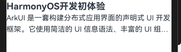 Text("ArkUI 是一套构建分布式应用界面的声明式 UI 开发框架。它使用简洁的 UI 信息语法、丰富的 UI 组件、以及实时界面预览工具,帮助你提升 HarmonyOS 应用界面开发效率。你只需使用一套 ArkTS API,就能在多个 HarmonyOS 设备上提供生动而流畅的用户界面体验。") .width("100%") //用于约束溢出限制的行数时变为省略号 .textOverflow({ overflow: TextOverflow.Ellipsis }) //超出两行即为溢出 .maxLines(2) //设置文本的行高 .lineHeight(25) } } .height('100%') .width('100%') } }