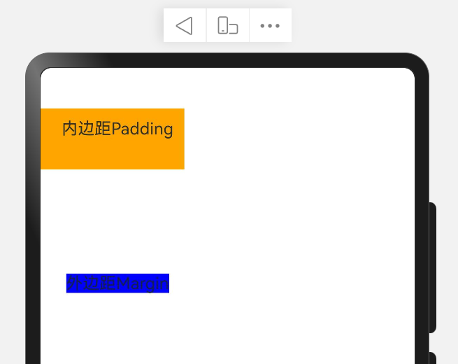 | Text("内边距Padding") // .padding(20) 在四个方向上都是20的内边距 .padding({ top: 10, bottom: 30, left: 20, right: 10 }) .backgroundColor(Color.Orange)